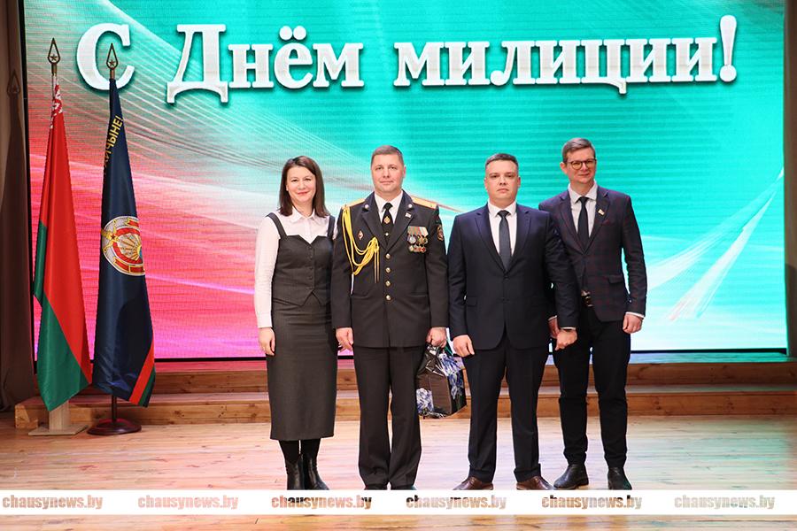 Поздравили милиционеров с праздником начальник отдела по образованию Денис Никифоров, главный врач Чаусской ЦРБ Оксана Карпович и директор завода ЖБИ Антон Вальковский.