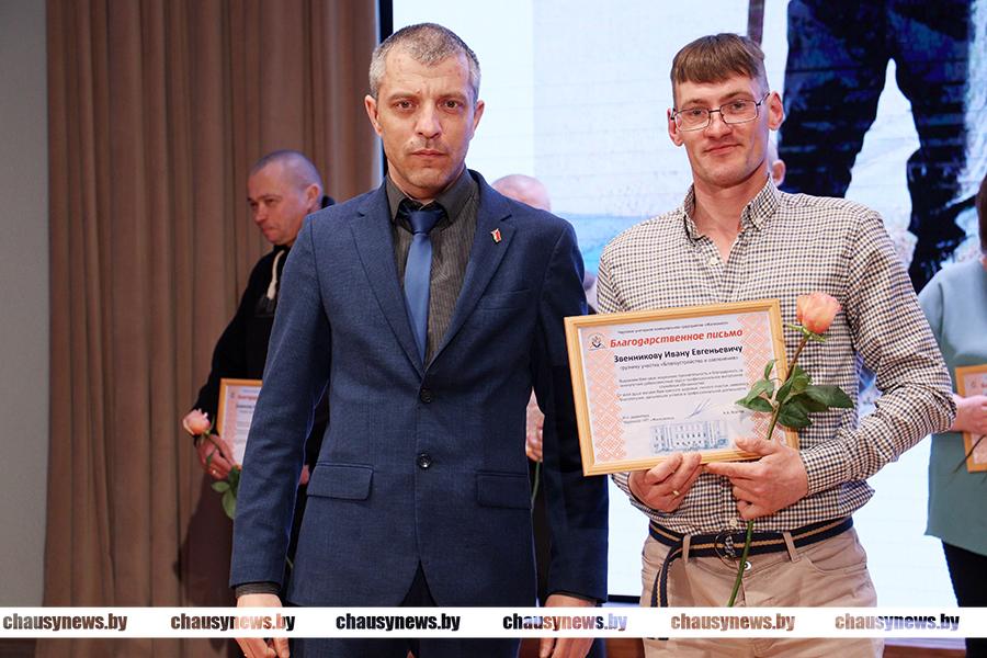 Благодарность Чаусского райисполкома объявлена Сергею Лебёдкину, оператору котельной участка; Виктории Трифоновой, бухгалтеру.