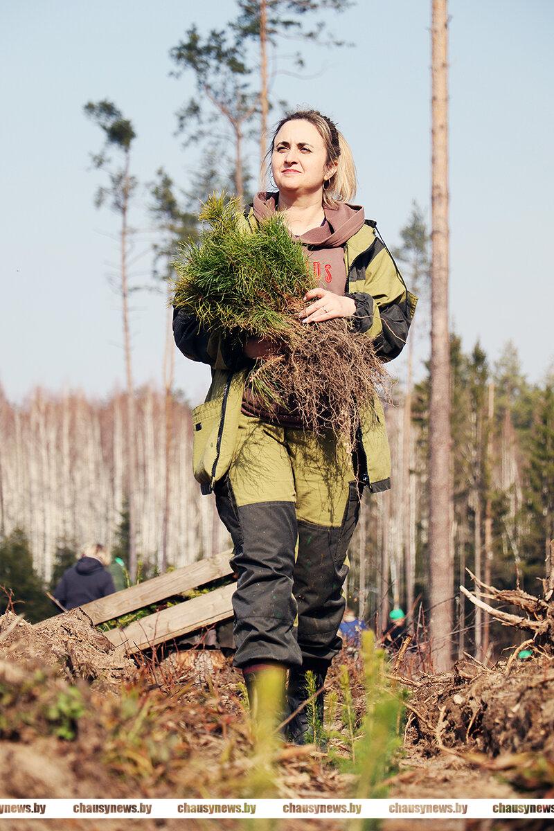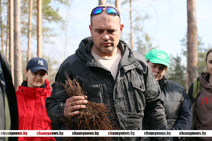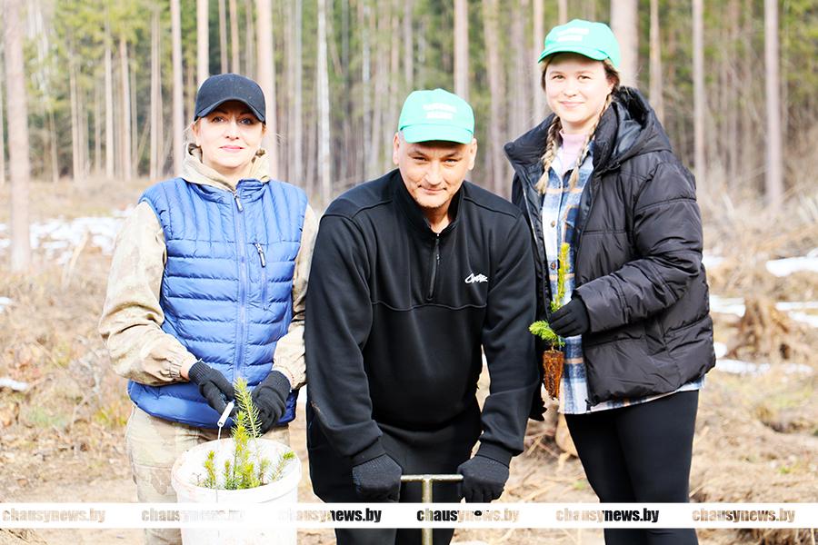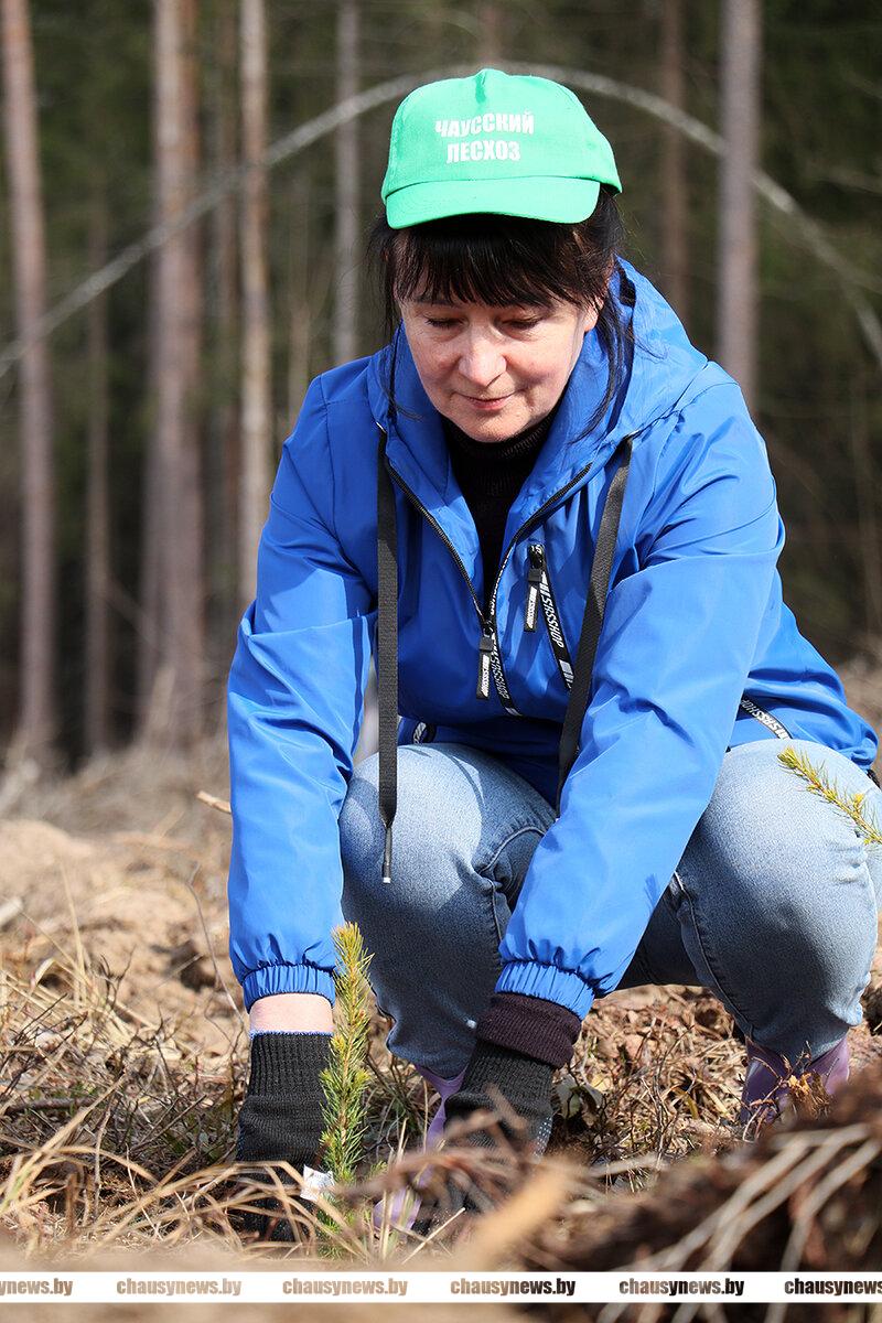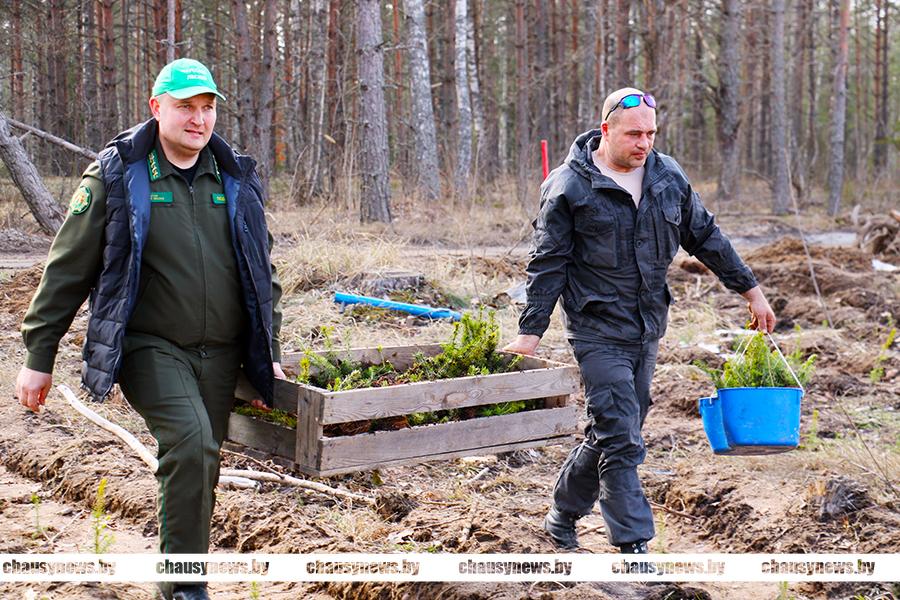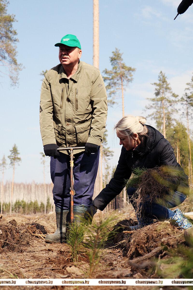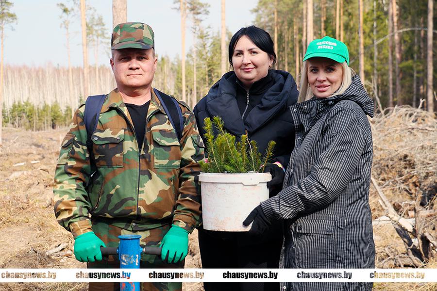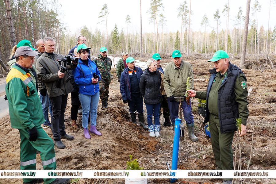 Посадка сеянцев ели, сосны и березы проходила в 89-м квартале Чаусского лесничества Чаусского лесхоза. После обязательного инструктажа, который провел директор лесхоза Александр Подобед, все дружно приступили к работе. Посадочный материал был представлен сеянцами ели с закрытой корневой системой, открытой корневой системой сосны обыкновенной и сеянцами березы. Особенность посадки ели заключалась в том, что для создания лунки под ее посадку использовался, так называемый трубный метод с использованием специнструмента. Сосну и березу высаживали привычным способом.