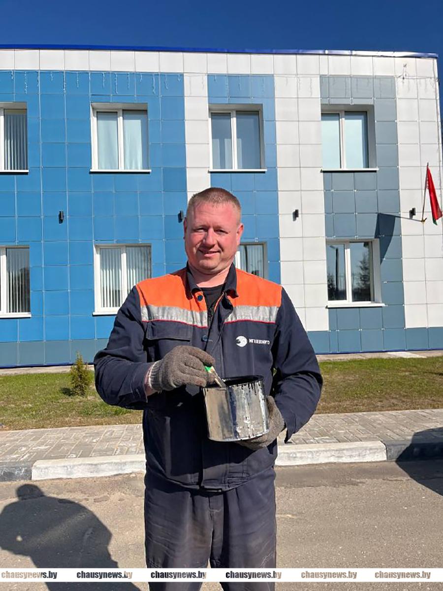 Работники Чаусского района электрических сетей приводят в порядок территорию организации.