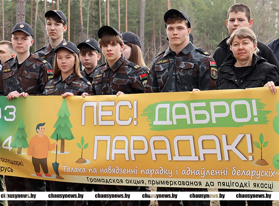 Республиканская акция «Лес! Дабро! Парадак!» продолжается в Чаусском районе. В последний мартовский день в посадке леса приняли участие сотрудники Чаусского РОЧС, РОВД, а также участники военно-патриотического клуба «Мужество» из первой городской школы. Посадка сеянцев ели, сосны и березы проходила в 89-м квартале Чаусского лесничества.