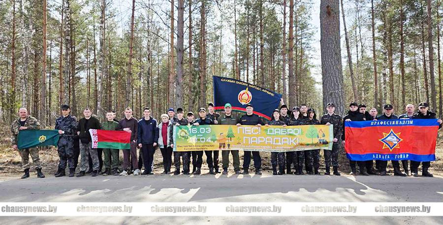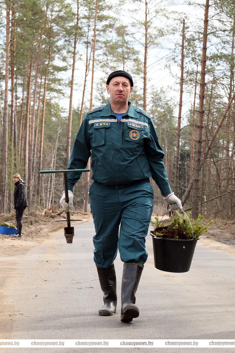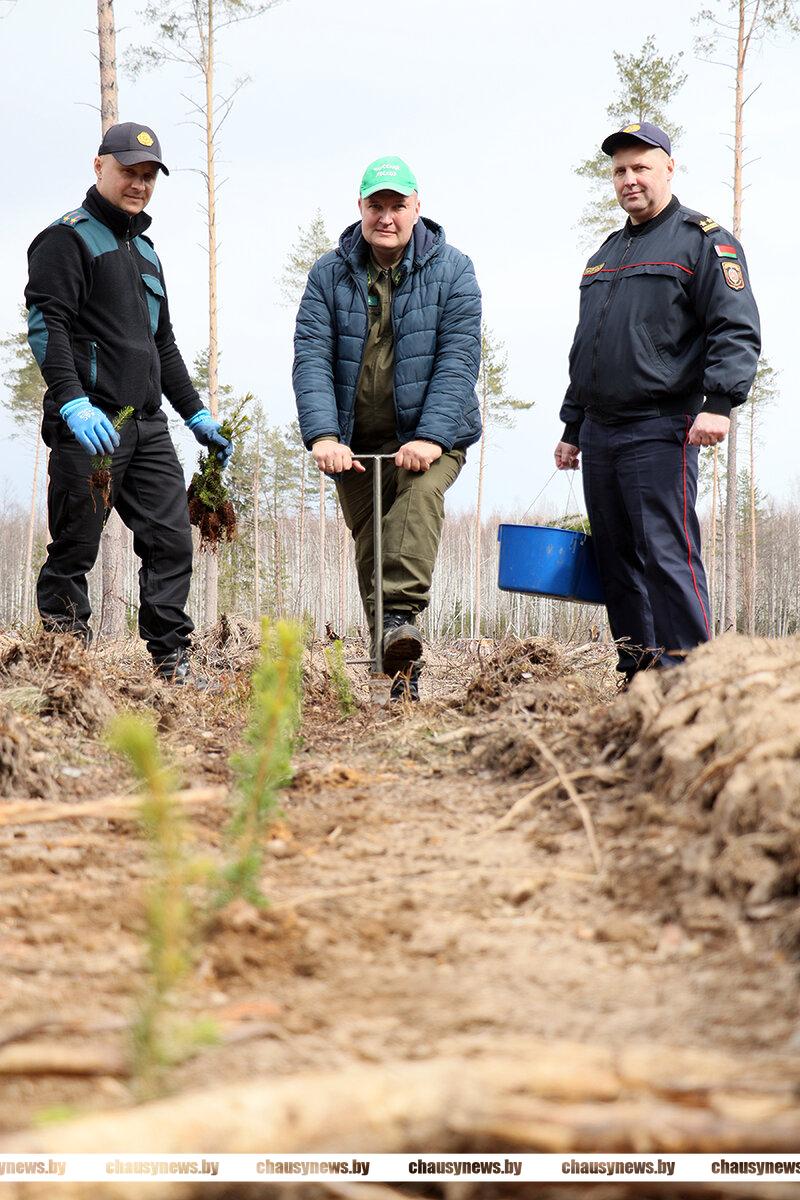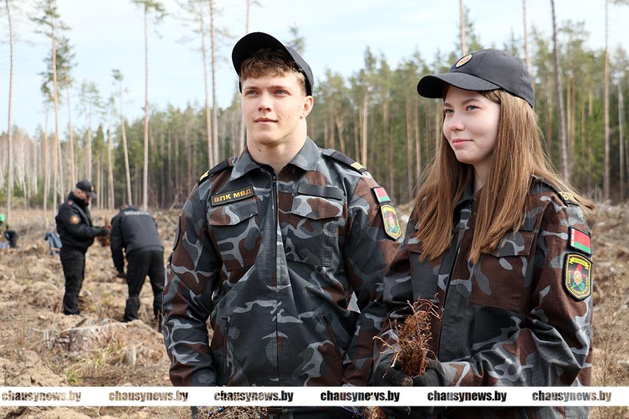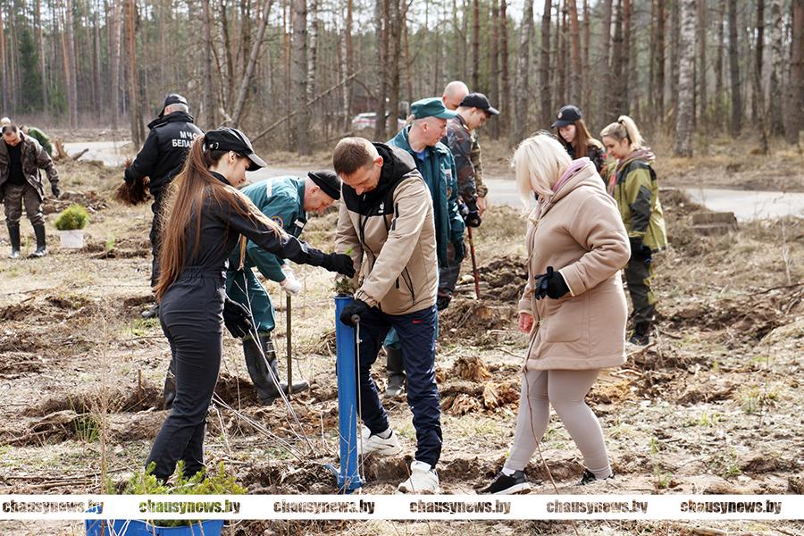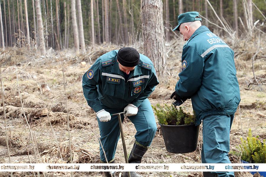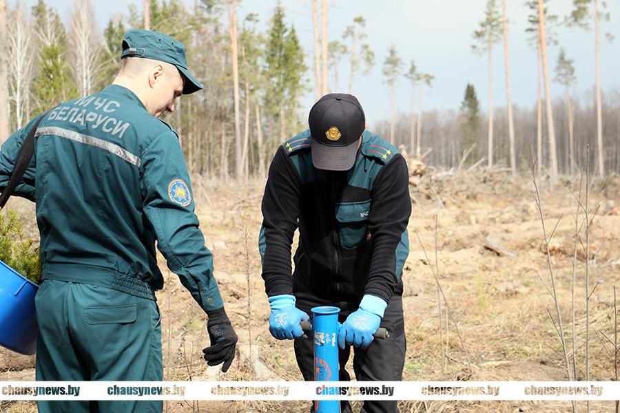 В Чаусах сотрудники РОЧС, РОВД и военно-патриотический клуб «Мужество» приняли участие в посадке леса