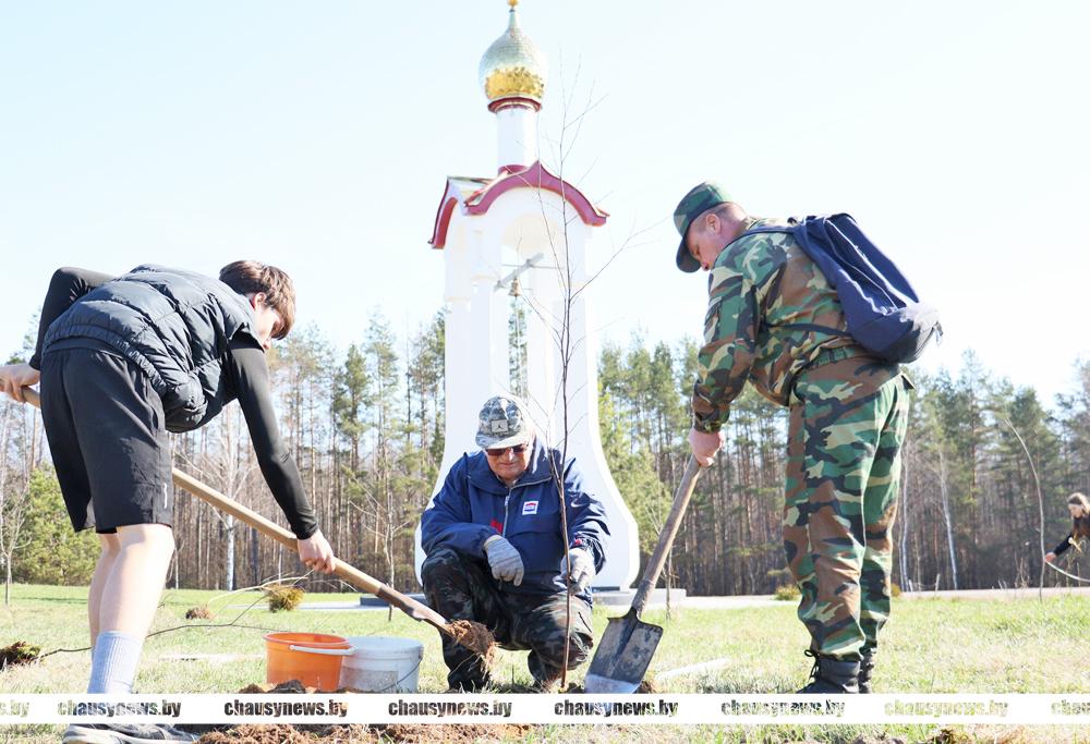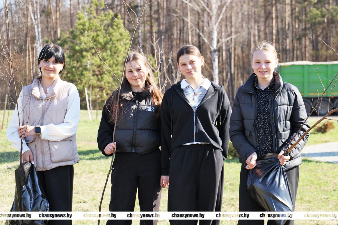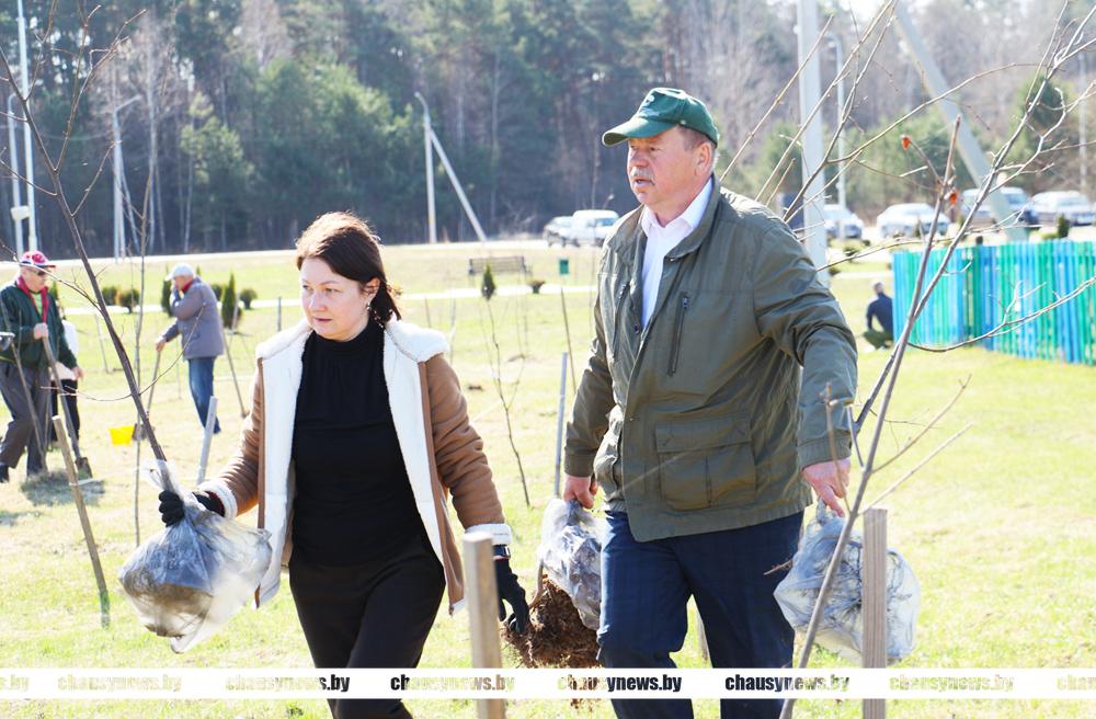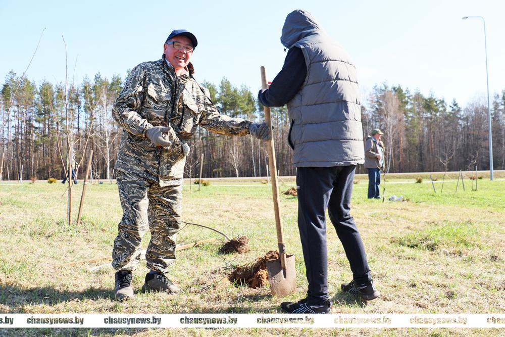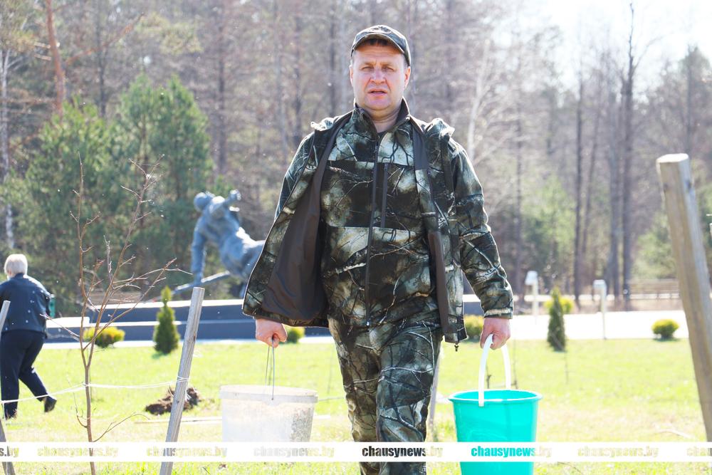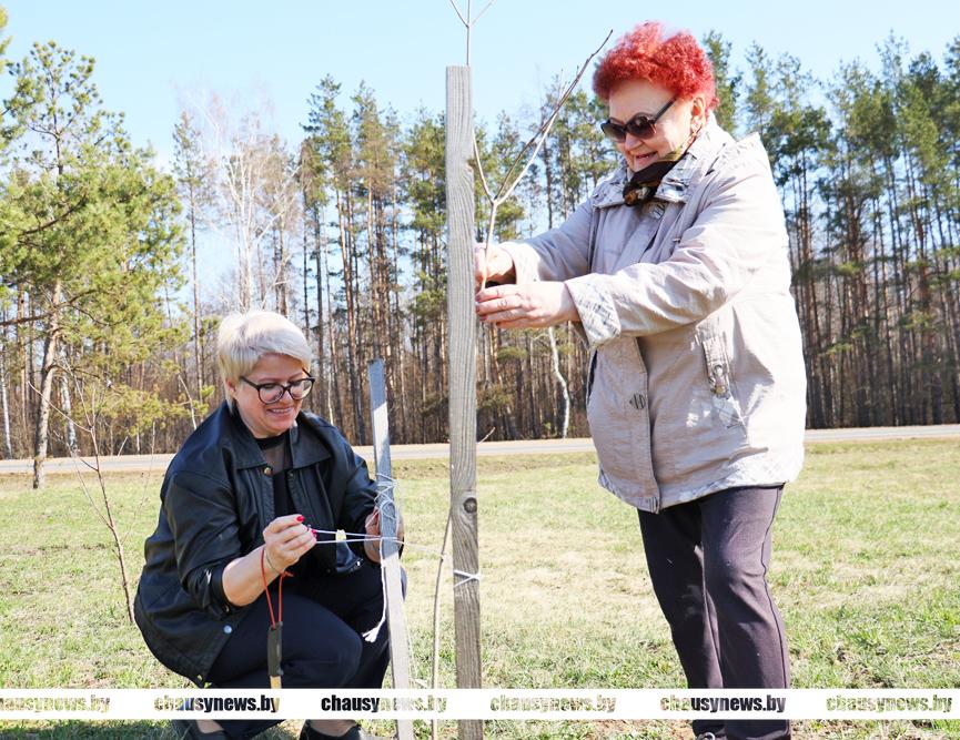 В погожий весенний день с хорошим настроением трудились ветераны труда, учащиеся Чаусской областной средней школы, представители Районного Совета депутатов. Материал для посадки предоставлен Чаусским лесхозом.