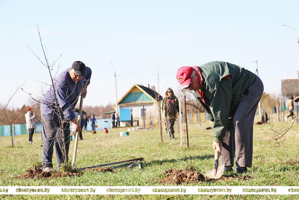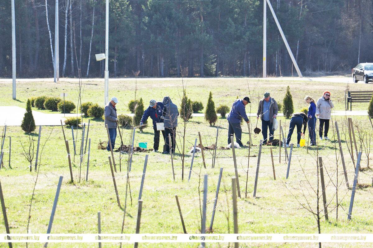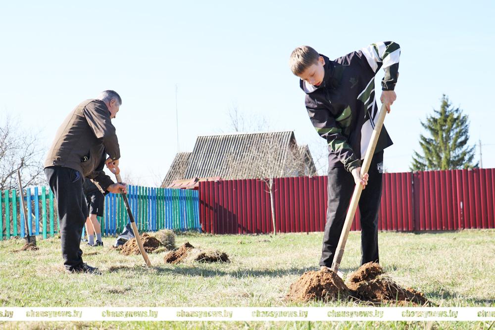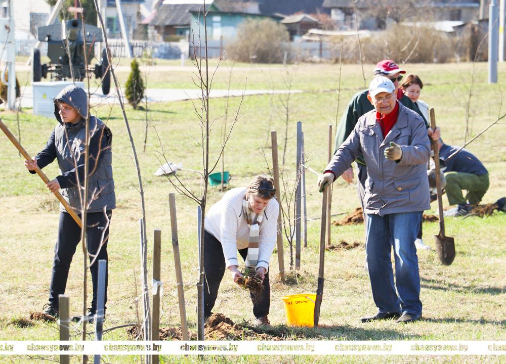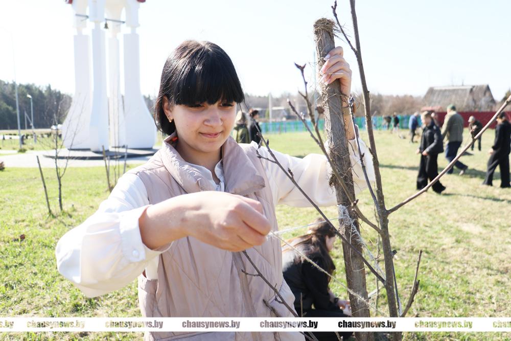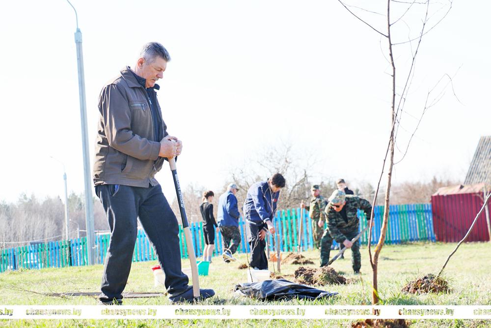 В погожий весенний день с хорошим настроением трудились ветераны труда, учащиеся Чаусской областной средней школы, представители Районного Совета депутатов. Материал для посадки предоставлен Чаусским лесхозом.