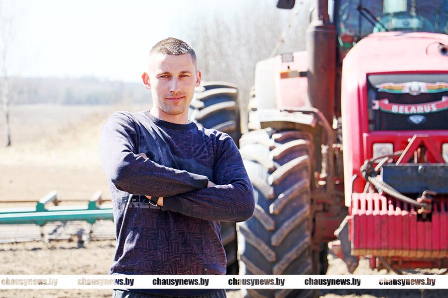 В сельском хозяйстве он без малого 10 лет. Сам из Чаус. После окончания второй городской школы на базе Агросервиса получил удостоверение тракториста. Затем, когда уже работал, повышал квалификацию и получал новые категории на Амкодор и комбайн в Могилеве. В период полевых работ может выполнять различные задачи. Этой ранней весной помогал ОАО «УльяновскоеАгро» на вспашке почвы.