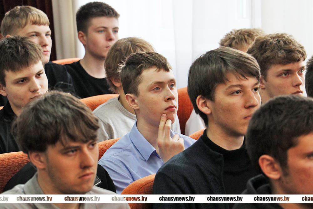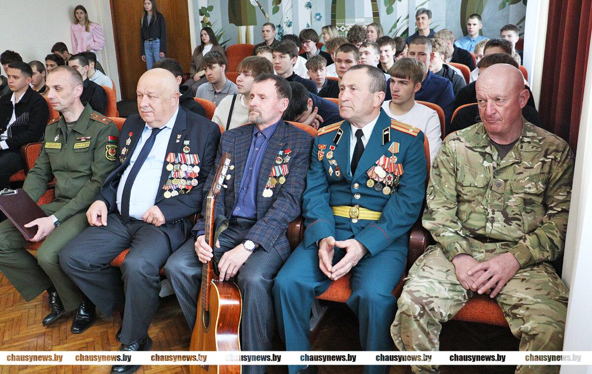 Поздравляя ребят с важным этапом в жизни, председатель общественного объединения «Белорусский союз ветеранов войны в Афганистане по Чаусскому району», ветеран боевых действий на территории других государств (Республика Афганистан) Александр Улазовский отметил, что армия – это школа жизни, где мальчишки становятся мужчинами, а мужчины — защитниками. Это время, когда проверяется на прочность характер, сила духа и верность долгу. Он пожелал ребятам лёгкой службы, здоровья и сил, чтобы они стреляли только по мишеням и служили в мирное время.