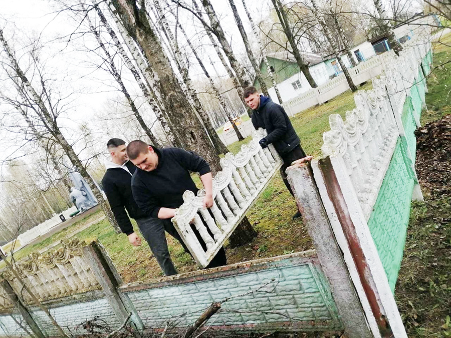 Работники Чаусского РОЧС наводят порядок на прилегающей территории административного здания и пожарной аварийно-спасательной части №1. Также наводится порядок на братском захоронении, за которым закреплен РОЧС. На въезде в пожарную аварийно-спасательную часть устанавливается знак «МЧС 112».