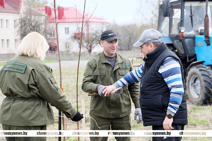 В рамках республиканского субботника работники Чаусской районной инспекции природных ресурсов, исполкома, коммунальных служб приняли участие в посадке парка вдоль улицы Первомайской, недалеко от поворота на Молодёжную улицу.