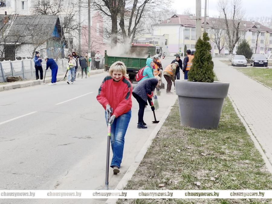 Жители села в Чаусском районе трудятся на республиканском субботнике